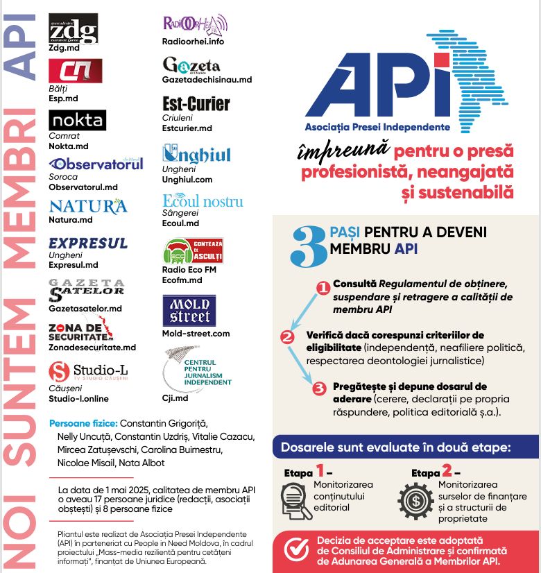 Dreptul de a obţine calitatea de membru al API îl are orice instituţie mass-media independentă, organizație sau asociație de jurnaliști, precum şi orice jurnalist/jurnalistă angajat/angajată sau liber profesionist/profesionistă care subscriu prevederilor statutare ale API şi întrunesc condiţiile de aderare.