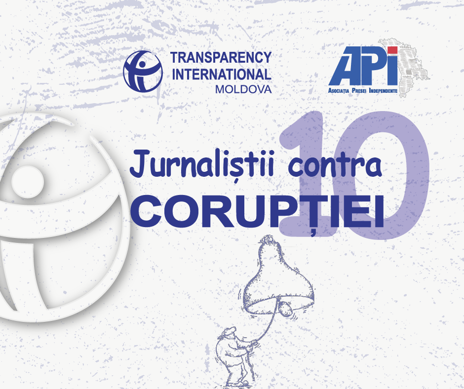 Concursul pentru jurnaliști „Reflectarea fenomenului corupției în presă”, care a ajuns la a zecea ediție, este desfășurat de Transparency International – Moldova pentru încurajarea reflectării argumentate a fenomenului corupției de către jurnaliști și diminuarea toleranței față de acest fenomen. După o pauză de câțiva ani, acest concurs a fost reluat, în parteneriat cu API.