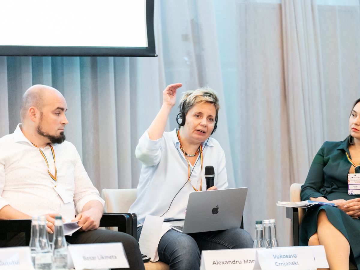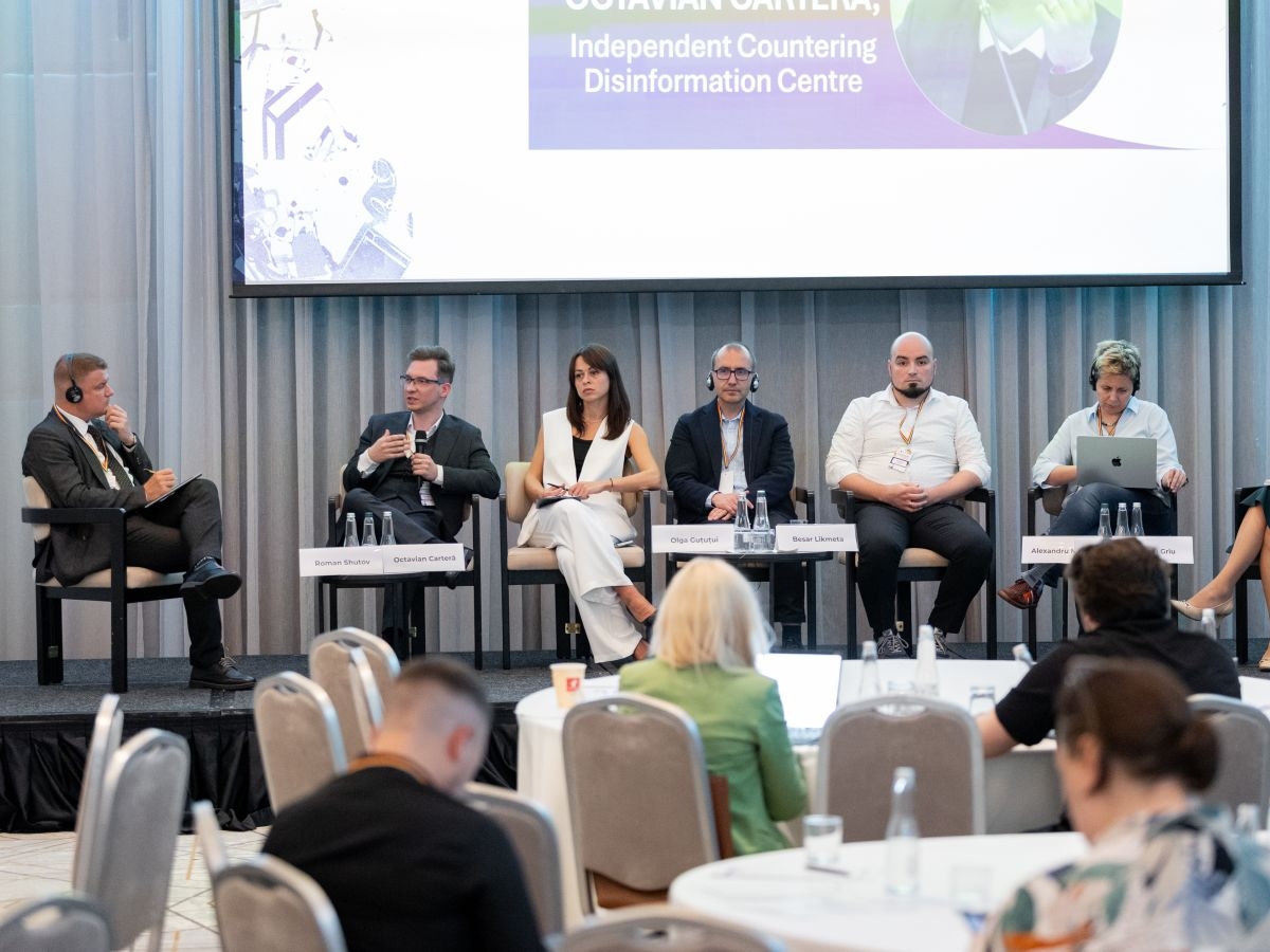 După un interviu realizat în timpul conferinței de Gulnara Akhundova (International Media Support - IMS) cu jurnalistele „Ziarului de Gardă” Măriuța Nistor și Natalia Zaharescu, autoarele investigației jurnalistice despre corupția electorală „În slujba Moscovei”, a urmat o discuție despre eforturile comune pentru diminuarea dezinformării în perioada electorală ale mass-media, influencerilor care modelează discursul public și organizațiilor societății civile. Discuția a fost moderată de Roman Shutov (IMS), iar viziunile și propunerile au fost prezentate de experți din R. Moldova: Octavian Carteră (Centrul Independent pentru Combaterea Dezinformării), Olga Guțuțui (IMS Moldova), Alexandru Manoli (GIZ Moldova), Natalia Grîu (expertă în educație media), dar și colegi din străinătate: Besar Likmeta (Balkan Investigative Reporting Network, Albania) și Vukosava Crnjanski (Center for Research, Transparency and Accountability, Serbia).