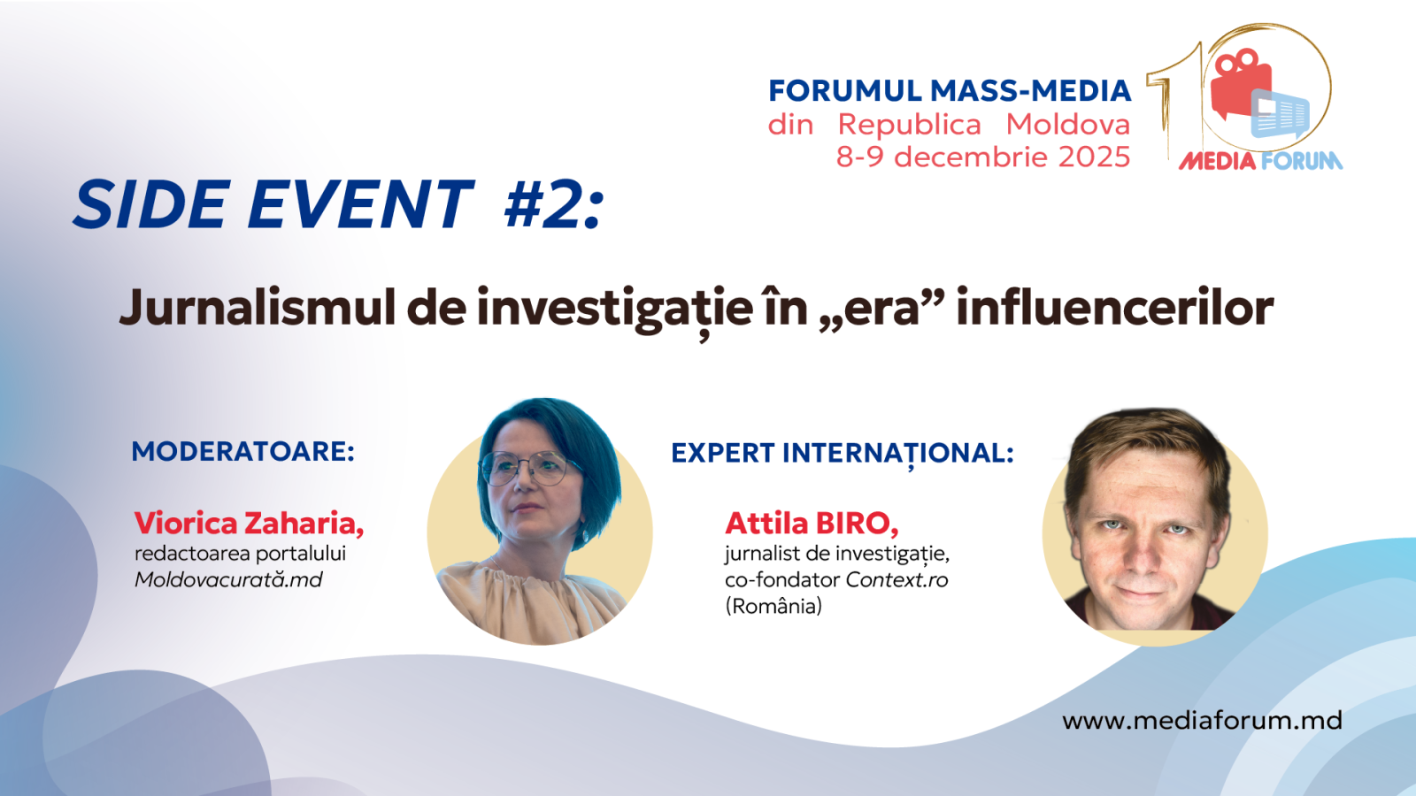 În cadrul Forumului Mass-Media 2025, care se va desfășura pe 8 și 9 decembrie la Chișinău, sunt planificate și două evenimente speciale: unul dedicat presei locale și altul - jurnalismului de investigație. Tradițional, va fi lansată o nouă ediție a „CĂRȚII NEGRE a risipei banilor publici în Republica Moldova” și vor fi premiate cele mai bune investigații jurnalistice ale anului.