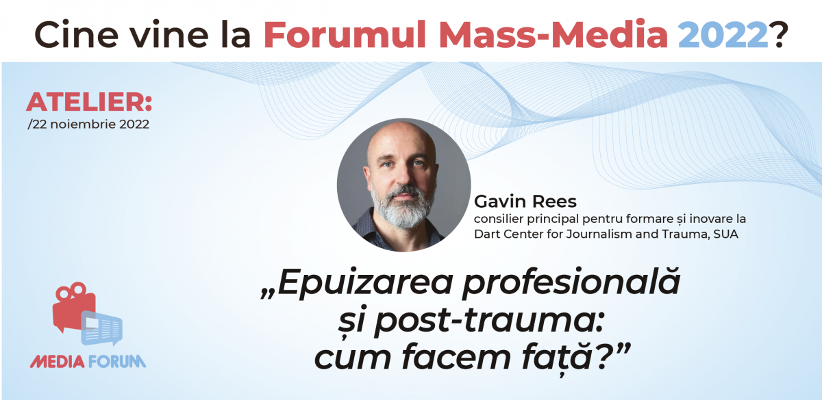 Arderea profesională sau „burnout” îi afectează tot mai mult pe jurnaliști, mai ales în perioadele de criză, cum a fost la începutul pandemiei, iar acum a războiului, când presiunea este foarte mare. Subiectul va fi discutat cu expertul Gavin Rees, la atelierul „Epuizarea profesională și post-trauma: cum facem față?”. Gavin este consilier principal pentru formare și inovare la organizația internațională Dart Center for Journalism and Trauma. Din 2008 este consultant și formator în domeniul conștientizării traumei pentru redacții, organizații de sprijin media și școli de jurnalism din Europa, precum și la nivel internațional.