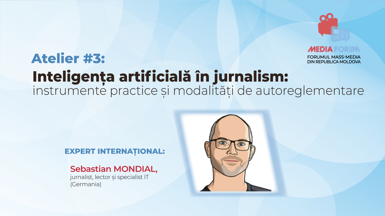 „Inteligența artificială în jurnalism: instrumente practice și modalități de autoreglementare” este tema celui de-al treilea atelier care va avea loc în a doua zi a Forumului Mass-Media 2023, pe 5 decembrie. Subiectul a fost ales în contextul în care, în ultima perioadă, se vorbește tot mai mult despre tehnologiile bazate pe inteligența artificială care oferă perspective fără precedent, dar reprezintă și o provocare pentru jurnaliști. Atelierul va fi facilitat de expertul din Germania, Sebastian Mondial, jurnalist, lector și specialist IT care predă, în prezent, cursuri de formare AI pentru jurnaliști. Anterior a lucrat la Germany News Agency și a predat la diferite școli și universități de jurnalism timp de peste 20 de ani.