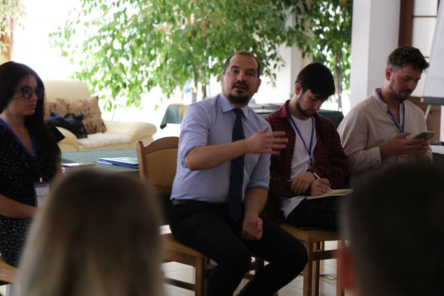 Elena Bacaliuc, Alexandru Cataraga, Liviu Lazăr, Drăgălina Gurduza (de la stânga la dreapta) implicați în activități de grup. Foto: API