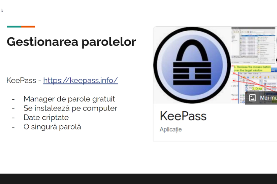 Pentru a sustrage ilegal informații din mediul virtual, spărgătorii (crackeri) de programe informatice instalează programe speciale în calculatoare, profitând de neatenția sau iresponsabilitatea unor utilizatori. Ulterior ei îi șantajează în scopuri financiare sau vând informația altor persoane, companii etc. „Regula de baza este să nu accesăm link-uri, documente necunoscute, să nu descărcăm programe neverificate din Internet, să nu răspundem la mesaje trimise pe mail de pe adrese necunoscute, chiar dacă expeditorii promit că vă lasă moștenire milioane de dolari etc. Fiecare cont de Google, Facebook, Instagram sau altele trebuie să aibă parole distincte, separate, iar autentificarea să fie neapărat prin doi pași. Pentru crearea parolelor, utilizați litere majuscule și minuscule, cifre, semne speciale, spre exemplu o frază în rusă scrisă în grafie latină, dar neapărat să aibă cel puțin 12 caractere. O parolă sigură arată cam așa: eX3Mp!ud#P@r0l2”, iar cel mai securizat cont trebuie sa fie poșta electronică, deoarece prin ea cel mai ușor se restabilesc celelalte conturi”, a spus Vitalie Harea, unul din traineri. El le-a recomandat managerilor media să aibă grijă ca în redacție să existe cel mult două persoane care administrează conturile redacțiilor, acestea să fie persoane de încredere care să delege, la rândul lor, roluri de actualizare a platformelor. Pentru gestionarea parolelor pot fi utilizate unele programe gratuite sau cu plată, cum ar fi KeePass - https://keepass.info/ sau LastPass - https://www.lastpass.com/, iar pentru a verifica dacă poșta electronică nu a fost spartă –https://haveibeenpwned.com.